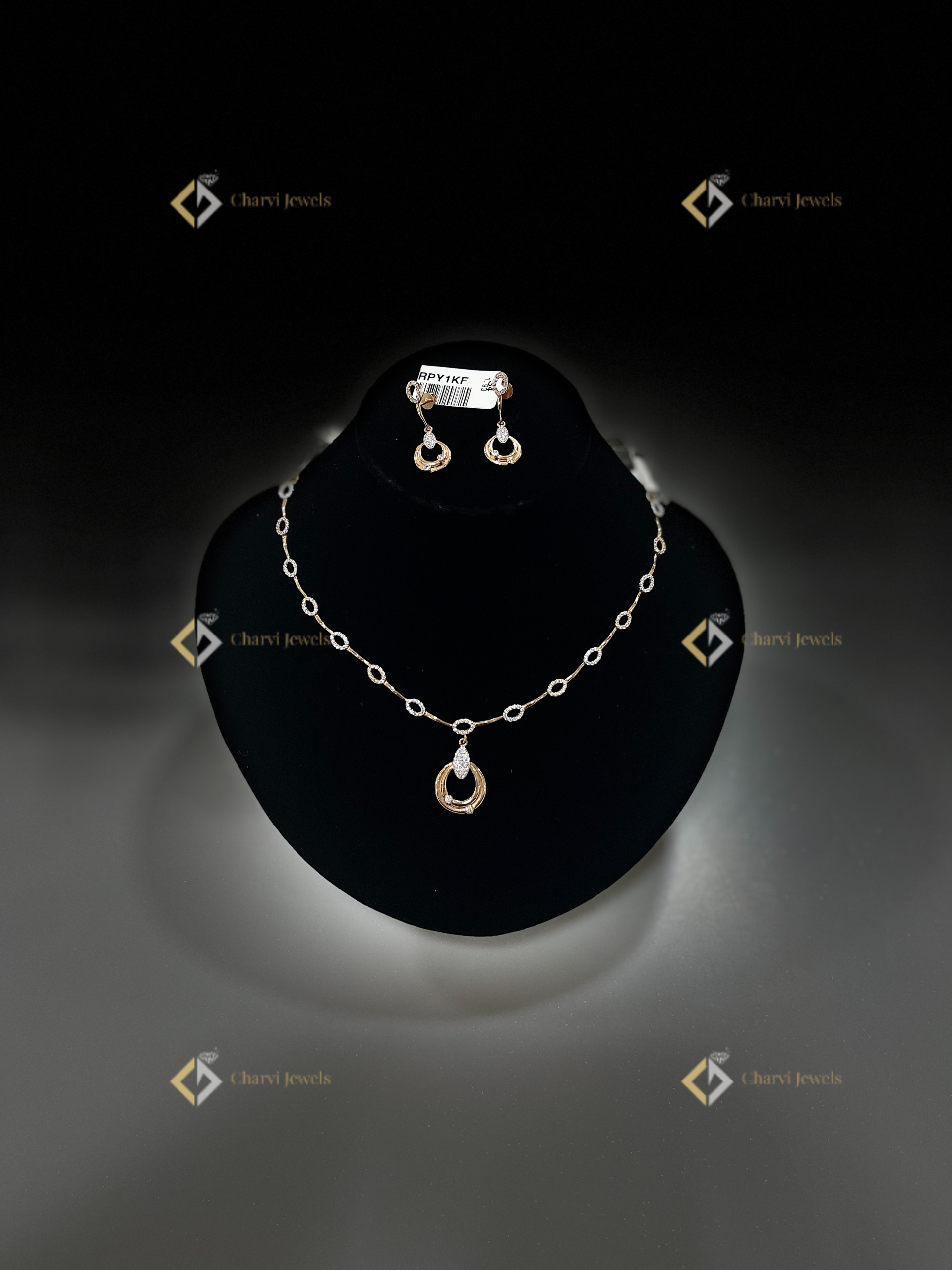 Charvi Jewels, located at TVS Road, R. S. Puram, Coimbatore, presents this exquisite circle diamond gold necklace with matching earrings. Designed for those who appreciate custom heirloom pieces and bespoke gold artistry, this set exemplifies our commitment to unique design and superior craftsmanship. At Charvi Jewels, we blend traditional techniques with modern aesthetics, creating timeless treasures. Each piece can be customized, making it truly your own. Visit our store at TVS Road, R. S. Puram, Coimbatore to experience the artistry firsthand. Our skilled artisans will guide you through crafting your own gold heirloom. Discover the brilliance of Charvi Jewels today.