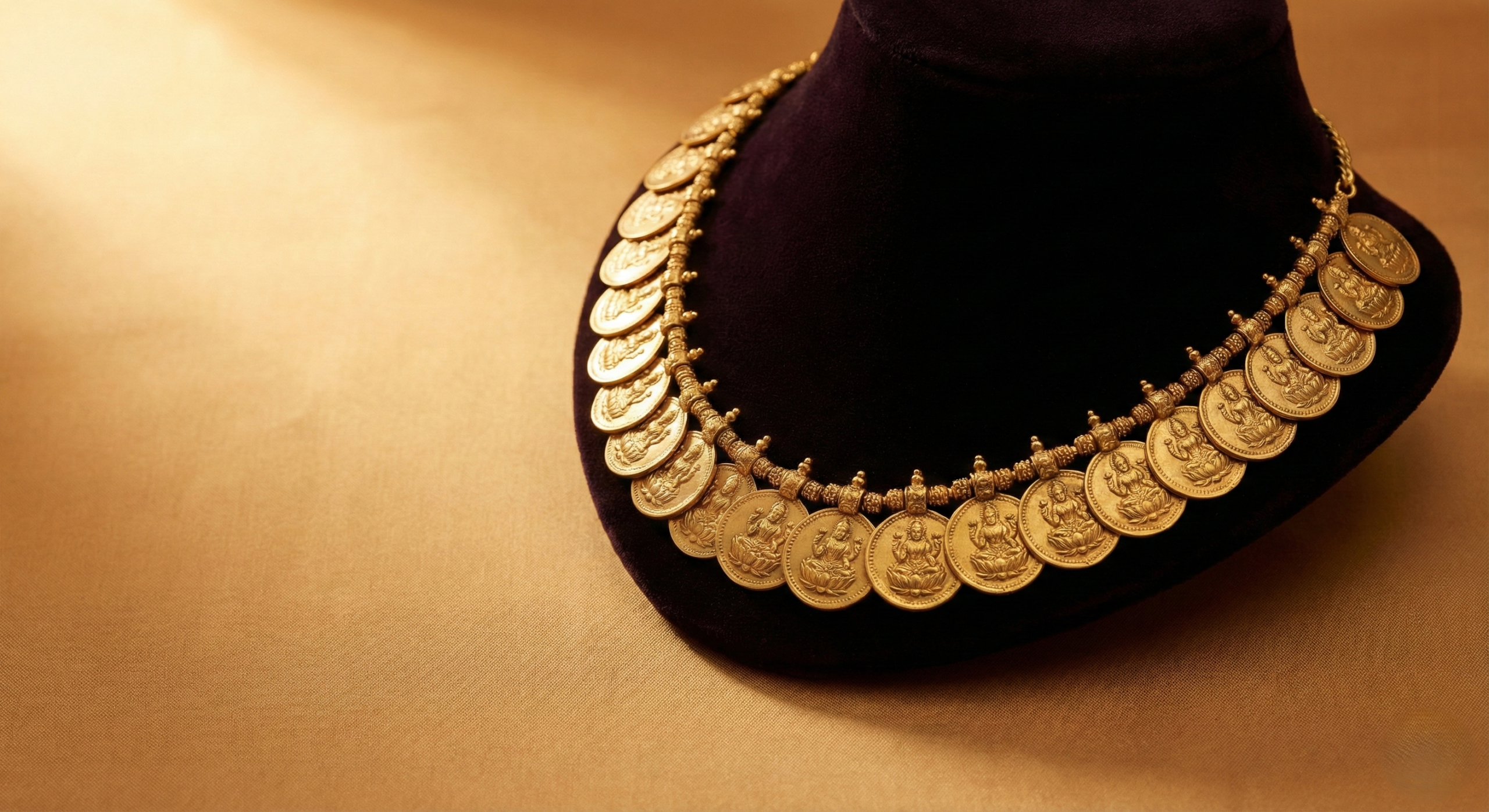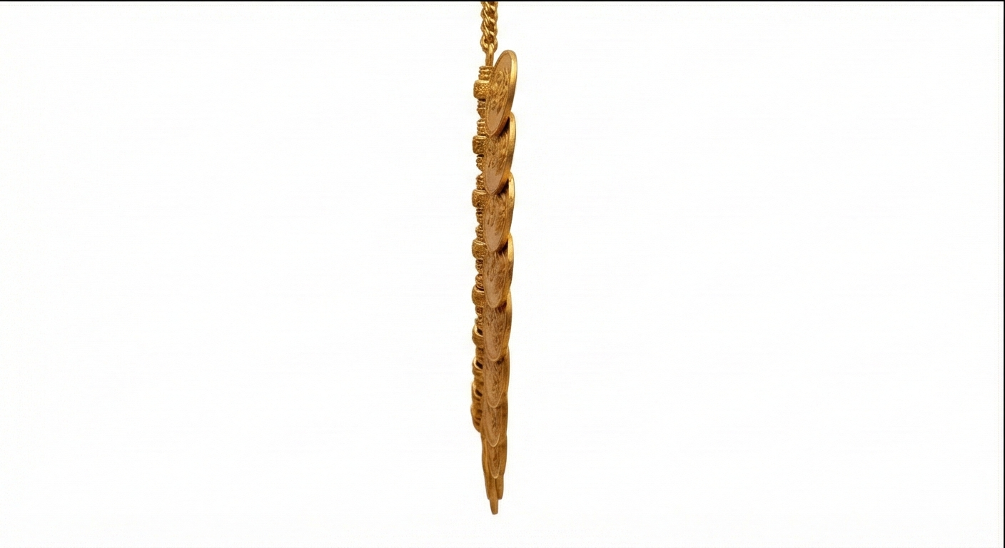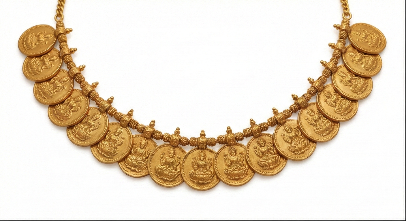 The Kasu Mala is not merely a necklace; it is a timeless narrative of Tamil culture woven into gold. At Charvi Jewels, we honor this legacy by crafting Kasu Malas that are the epitome of traditional grandeur. This classic long necklace consists of a series of overlapping gold coins, each intricately stamped with the motif of Goddess Lakshmi, the harbinger of wealth and auspicious beginnings. It is a staple in the bridal trousseau, designed to sit majestically against a Kanjeevaram saree, radiating a golden glow that captivates every onlooker.
