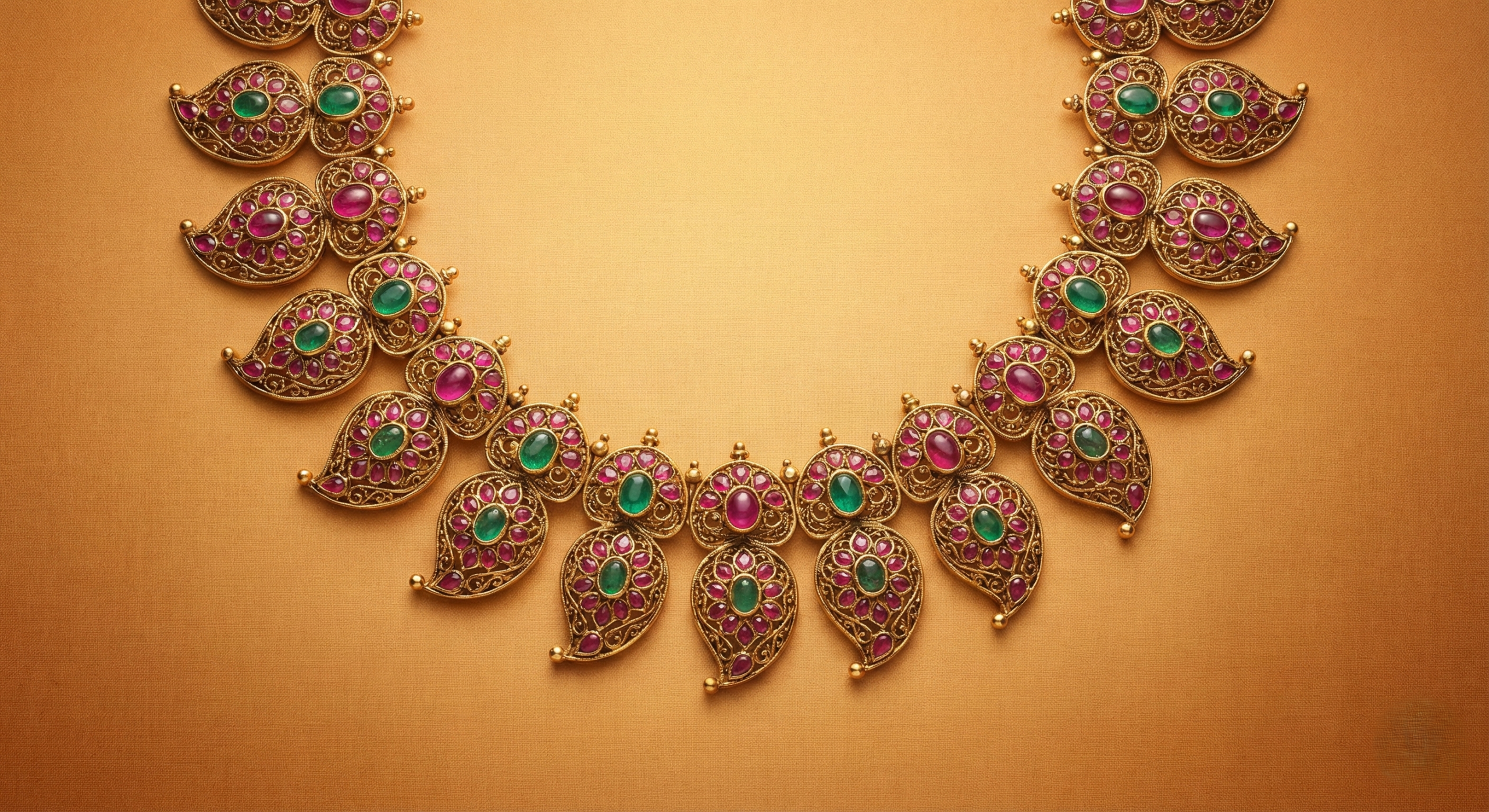 The Manga Malai is a quintessential masterpiece in South Indian jewelry, drawing inspiration from the mango, a fruit symbolizing fertility, love, and sweet beginnings. At Charvi Jewels, we have reimagined this heritage design to suit the modern bride while keeping its traditional soul intact. Each mango-shaped motif in the necklace is handcrafted with precision, often encrusted with deep red rubies, lush emeralds, or uncut diamonds that catch the light with every movement. The rhythmic arrangement of these motifs creates a silhouette that is both regal and feminine.